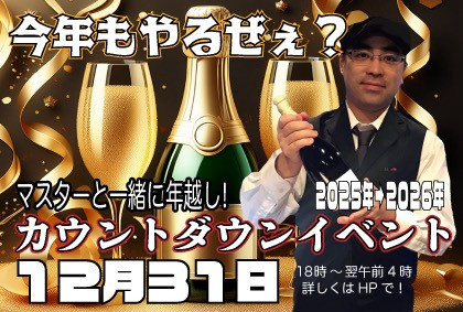 ※24時に滞在のお客様にはカウントダウンドリンク1杯が付きます。ゲームを一時中断して、みんなで乾杯しましょう!